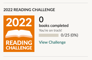 For 2022, my reading goal is 25 books for the year. I rounded up, but it’s about 2 books a month.
